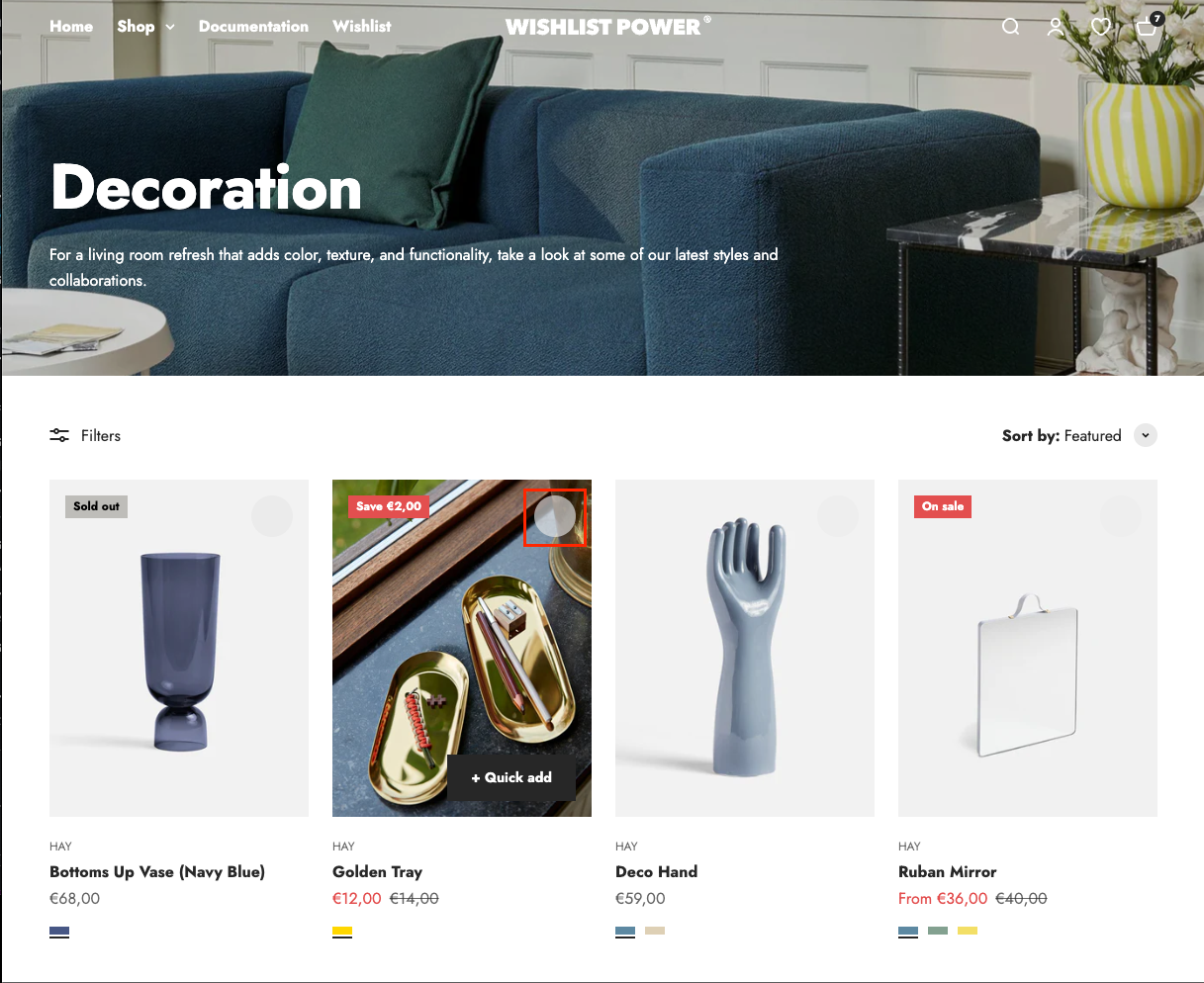 This section allows you to customize the Wishlist icon displayed on each product card (grid/list views).