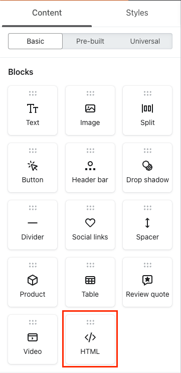 Drag an HTML block into the email wherever you want the wishlisted items to appear.